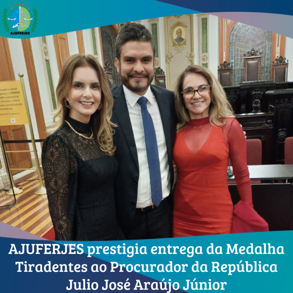 A AJUFERJES esteve presente ontem (27/05) na cerimônia de entrega da Medalha Tiradentes ao Procurador da República Julio José Araújo Júnior, ocorrida no Centro Cultural da Justiça Federal.