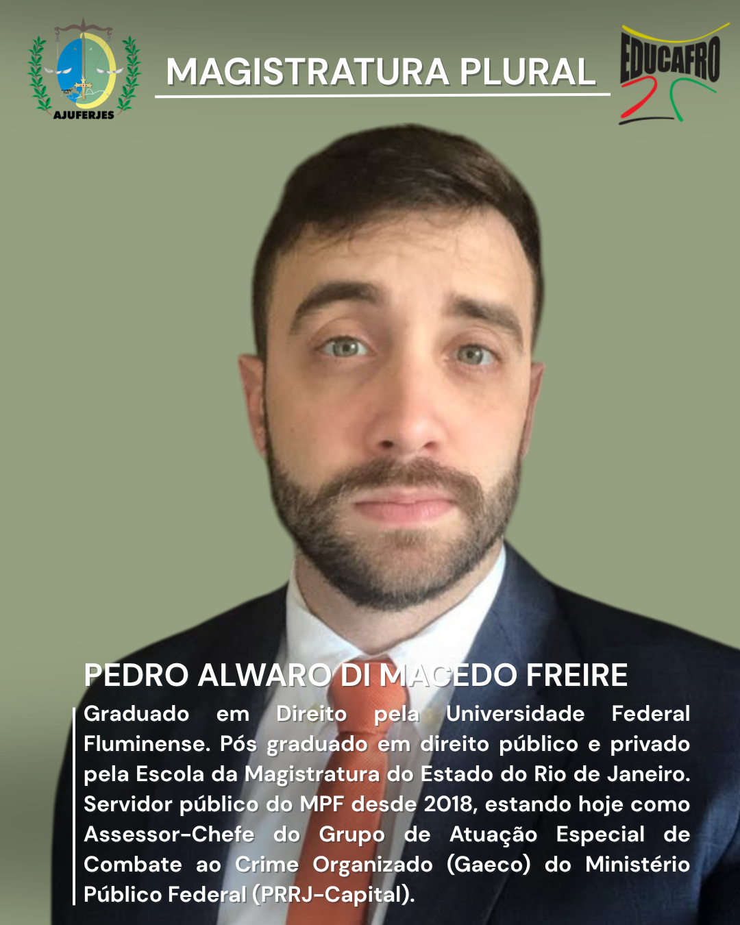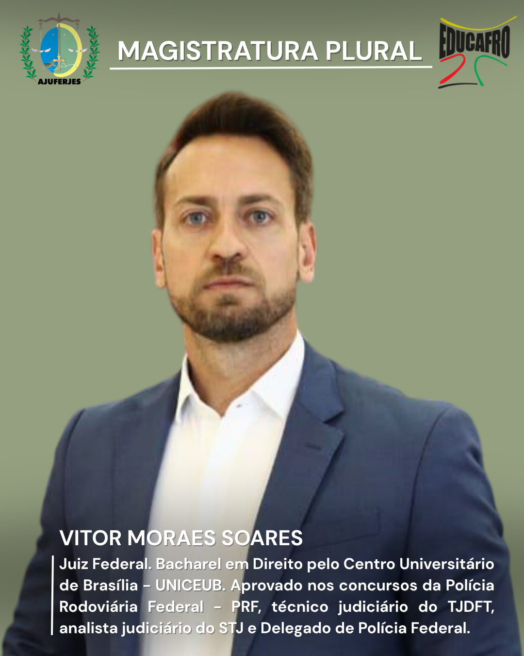 Hoje apresentamos o professor de Processo Penal Vitor Moraes Soares, o professor de Direitos Humanos Denizom Oliveira, o professor de Direito Civil Pedro Alwaro Di Macedo Freire, e a professora de Direito Civil Bruna Vilanova, todos voluntários no curso da Magistratura Plural, que é promovido pela Ajuferjes em parceria com a Educafro.