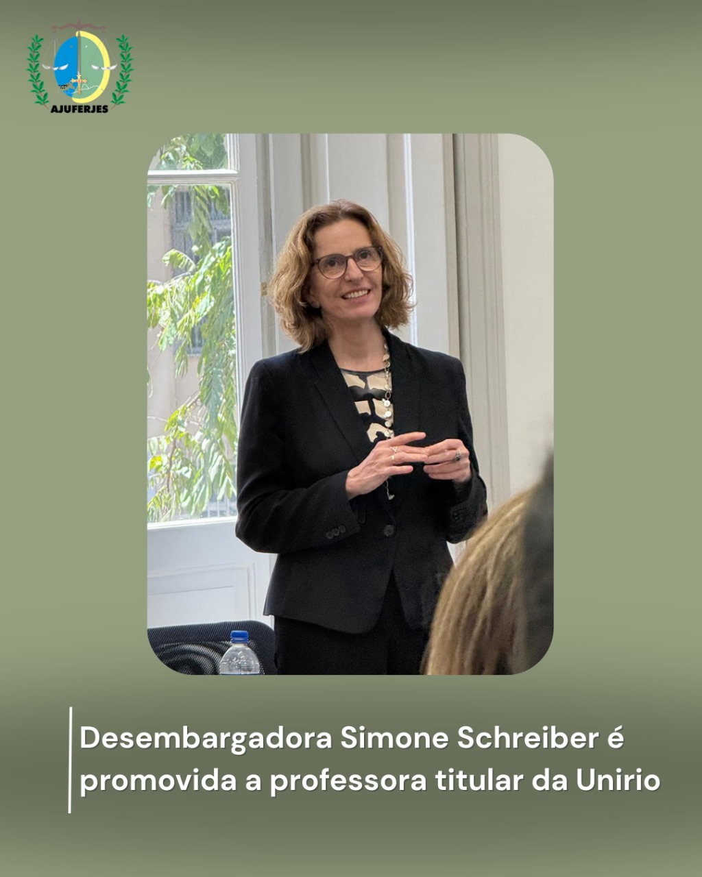 A desembargadora federal Simone Schreiber defendeu e teve aprovado seu memorial para promoção à titularidade em direito processual penal na Escola de Ciências Jurídicas da Universidade Federal do Estado do Rio de Janeiro (UNIRIO).