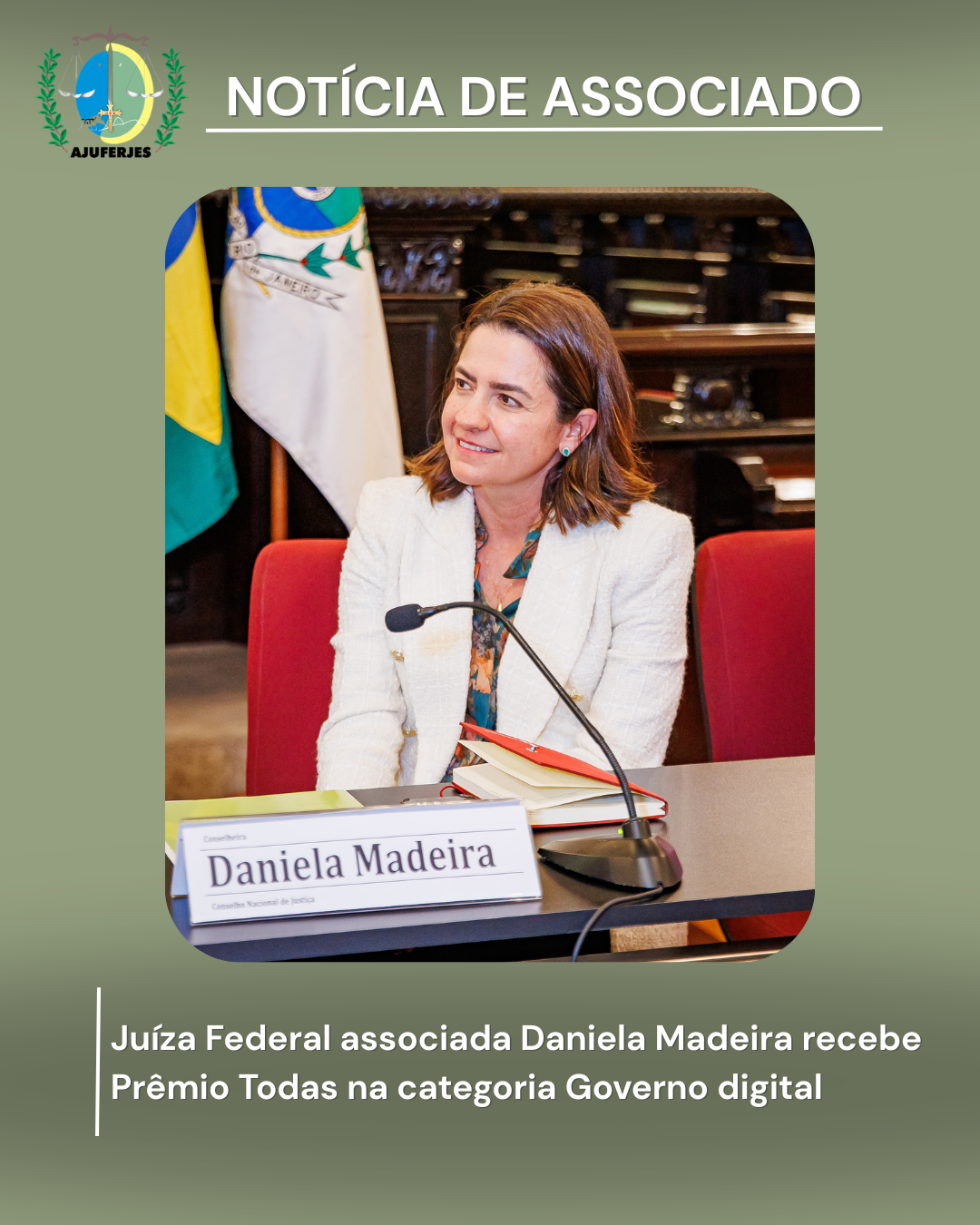 A Juíza Federal associada e Conselheira do CNJ Daniela Madeira foi agraciada com o Prêmio Todas, na categoria Governo digital.