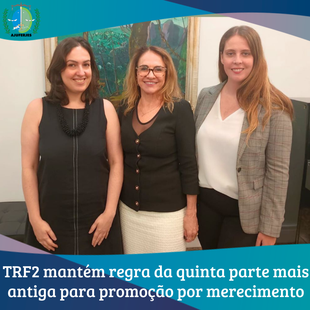 Por ampla maioria de votos, o TRF2 manteve a previsão do art. 32, inciso II, do Regimento Interno do Tribunal, que dispõe que os magistrados promovidos por merecimento deverão estar no quinto mais antigo da carreira. Essa foi a solução defendida pela Ajuferjes, cujo presidente, Marceli Siqueira, fez sustentação oral no Plenário. Estiveram apresentou na sessão, além da presidente da associação, a vice-presidente Mariana Preturlan e a diretora tesoureira Laura Carvalho.